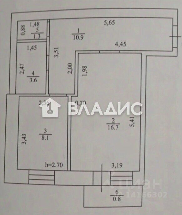 Жилая площадь: 16,7 кв. м.