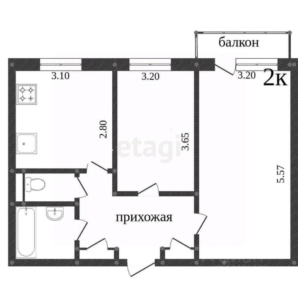 1 лоджия, 1 балкон