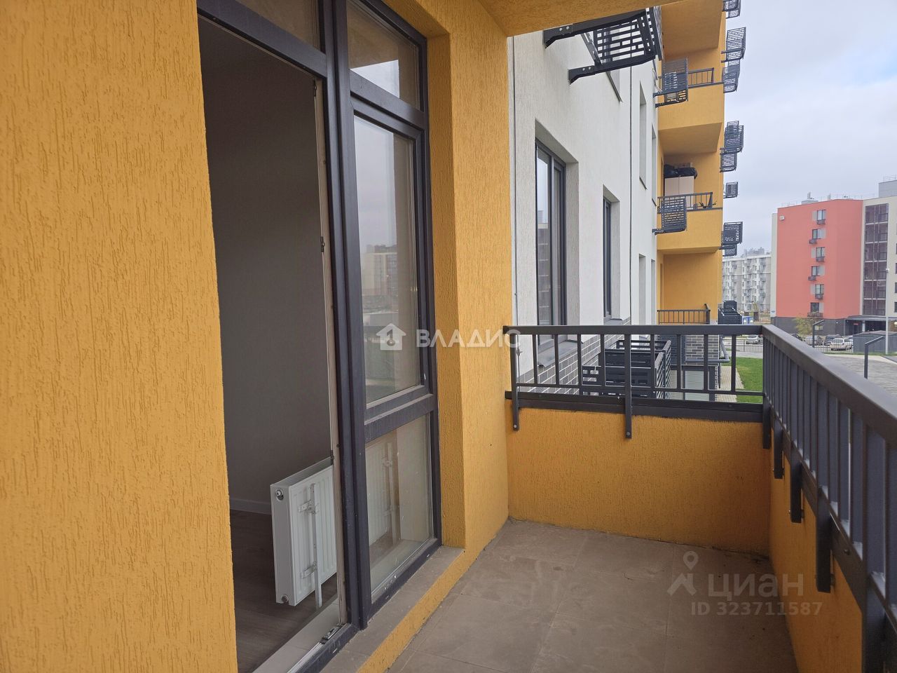 Балкон можно остеклить. На фасаде установлена корзина для кондиционера.