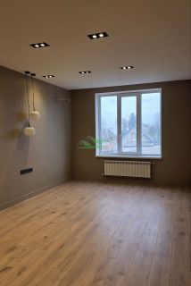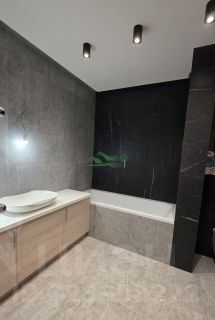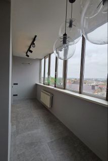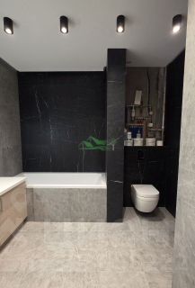 Продается новая квартира (никто не жил) с дизайнерским ремонтом в кирпичном доме 2014 года с индивидуальным отоплением. Квартира изначально 2-комнатная, но переделана в 2-евро. В квартире большая кухня-гостиная 37 кв.м (балкон соединен с комнатой и кухней), спальня 20 кв.м, гардеробная 4,3 кв.м, совместный санузел 8 кв.м, холл 10,2 кв.м. Отделана очень дорогими материалами, на полу керамогранит и ламинат, дизайнерский свет - сочетание трекового, точечного, потолочного освещения и светодиодных лент, теплый пол, на стенах специальная краска для стен, установлена дорогая кухня со встроенной техникой - холодильник, посудомойка, варочная панель, духовка. Вся техника остается. Дорогая сантехника. Хороший развивающийся район, рядом магазины, школы, садики, остановки - транспортная развязка во все концы города. 1 взрослый собственник. В собственности более 5 лет. Причина продажи банальна - квартира покупалась и отделывалась для сына, но он захотел жить в столице.