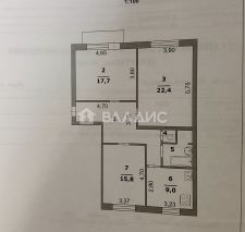 Квартира расположена на девятом этаже девятиэтажного КИРПИЧНОГО дома. Здесь вас порадует высота потолков в 2,7 метра и уютные, ПРОСТОРНЫЕ, хорошо освещённые комнаты с изолированными пространствами площадью 17,7, 22,4 и 15,8 квадратных метров.