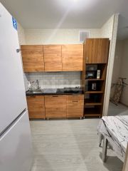 Квартира расположена на первом этаже, площадь 27 м². Дом построен в 2023 году и введён в эксплуатацию в 2024 году. Внутри выполнена отделка: на стенах обои, на полу ламинат, по всей квартире установлены натяжные потолки. Санузел совмещённый и полностью выложен плиткой. Новым собственникам остаётся вся мебель и техника, которые видны на фотографиях.