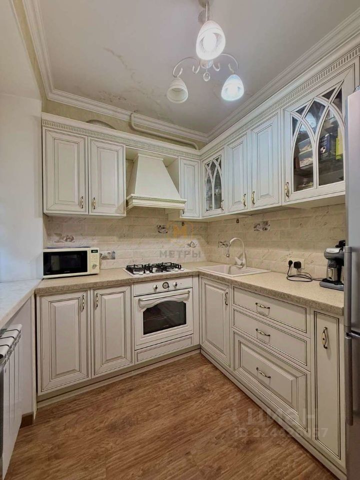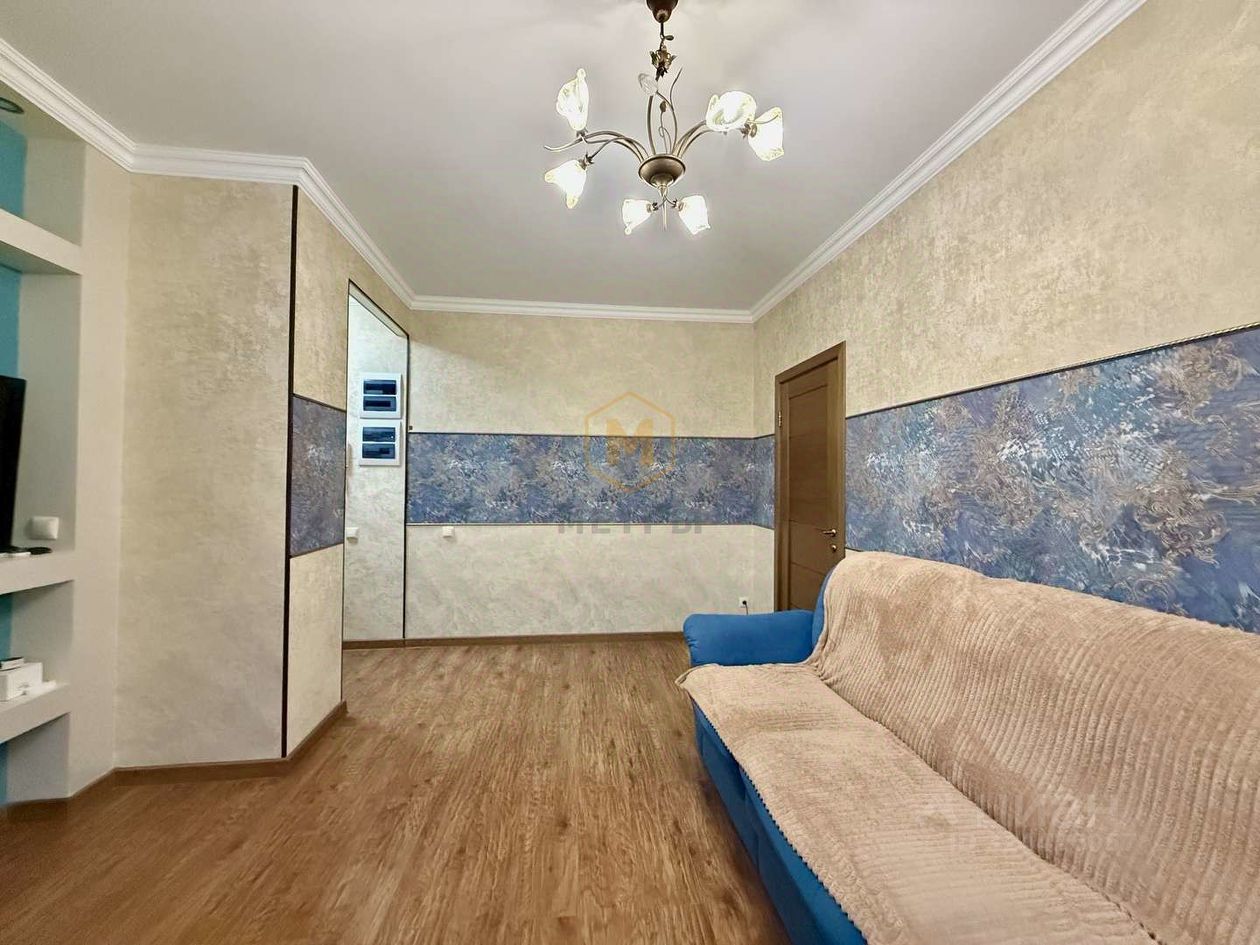 Квартира общей площадью 41 кв.м. Из них комнаты 17,1 кв.м, объединена с кухней для удобства и 13,5 кв.м, в комнате есть шкаф-гардеробная. В коридоре встроенный шкаф для верхней одежды. Санузел совмещенный, в кафеле. В квартире современный ремонт: стены выровнены и оклеены обоями Roberto Cavalli, заменена проводка, новые радиаторы отопления, трубы отопления ( стояки) утоплены в стену, на полу качественный ламинат, качественные окна 70 мм в три стекла с энергосбережением, оклеенные защитной противоосколочной пленкой. Межкомнатные двери каркасно-щитовые в шпоне. Горячая вода от газовой колонки (очень удобно на период отключения горячей воды). Есть кондиционер. Новым хозяевам остаётся качественный итальянский кухонный гарнитур Rimi с антивандальной столешницей, стол и стулья, вытяжка и духовой шкаф Gorenie, микроволновка, холодильник и вся мебель, которая на фото (комфортный диван с ортопедическим основанием, ортопедическая кровать), дорогие шторы блек аут, сшитые на заказ.