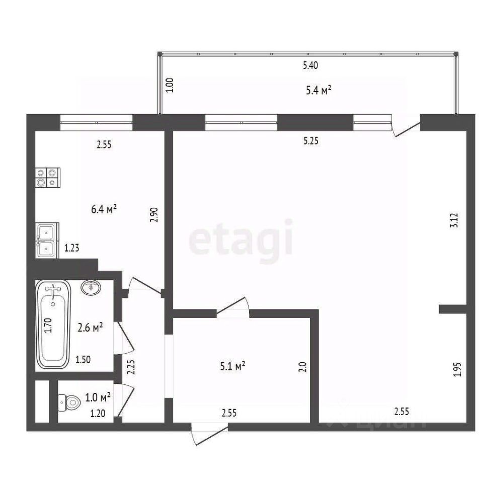 Площадь: 38,5 квадратных метров