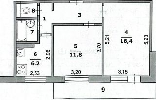 Общая площадь: 46,4 кв. м.