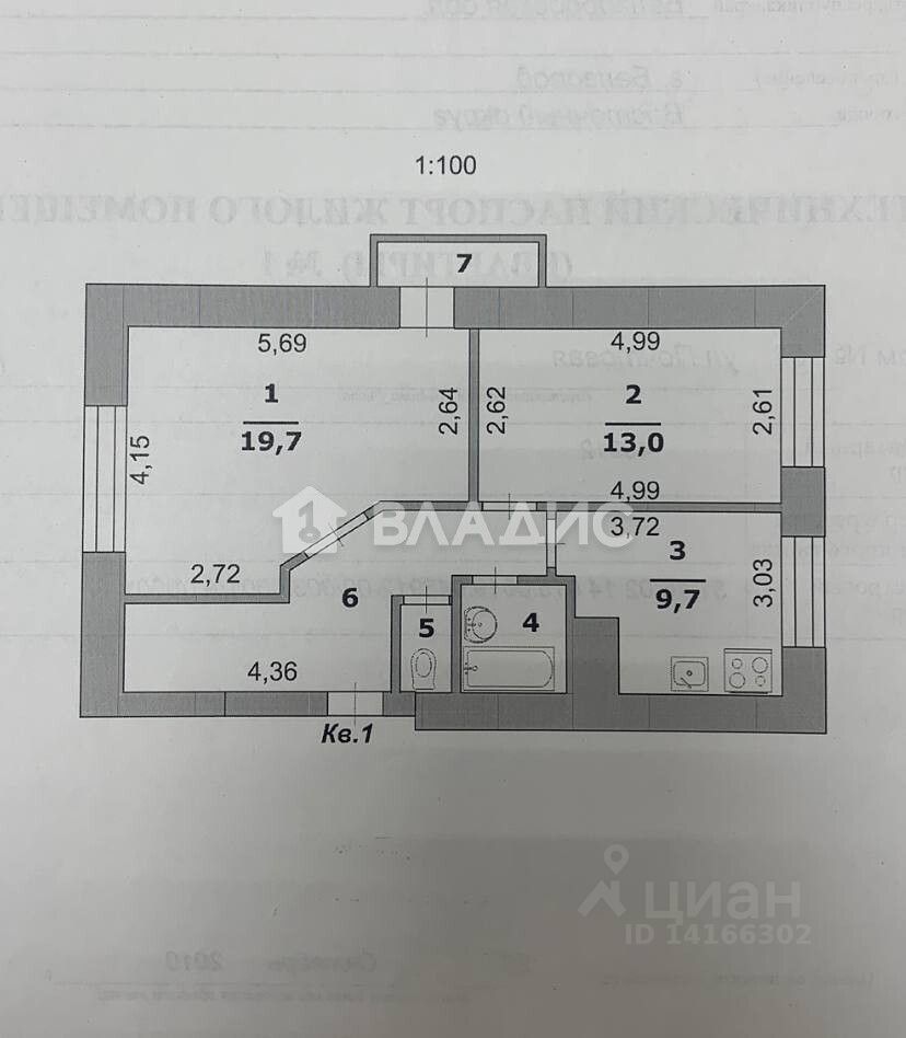 Общая площадь квартиры составляет 58,1 кв. м, из которых 32,7 кв. м — жилая площадь, а 9,7 кв. м — кухня.