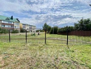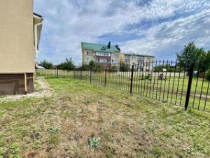 Придомовая территория огорожена забором, можно сделать навес, установить беседку и зону барбекю.