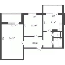 В квартире продуманная планировка. Широкий коридор, две раздельные комнаты, большая кухня.