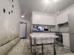 В квартире выполнен свежий современный ремонт в светлых тонах, стены оклеяны обоями, на полу ламинат, натяжные потолки. Санузел большой совмещенный, в светлом кафеле с яркими акцентами. Вся мебель и техника новая, остается по желанию покупателя.