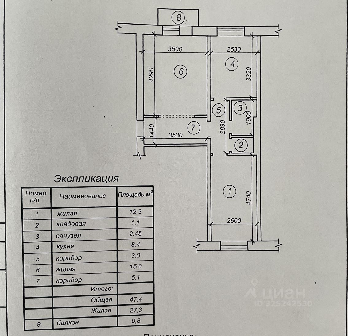 47,4 м²