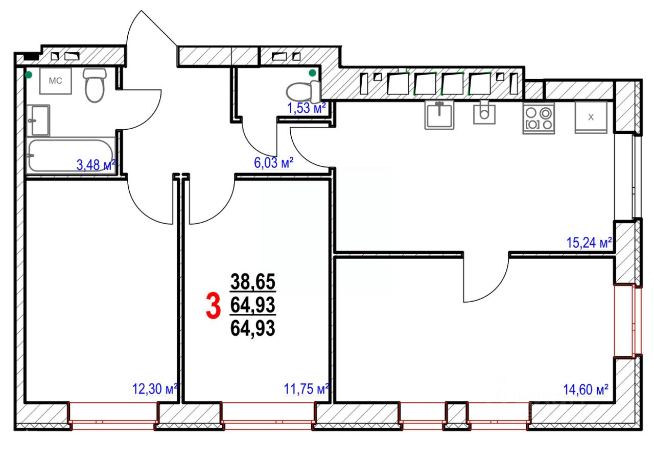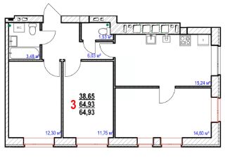 Продаётся 3-комнатная квартира в строящемся доме (Позиция 6 Блок-секция V-VI), срок сдачи: IV-кв. 2026, общей площадью 64.93 кв.м., на 2 этаже. Расположение, транспортная доступность