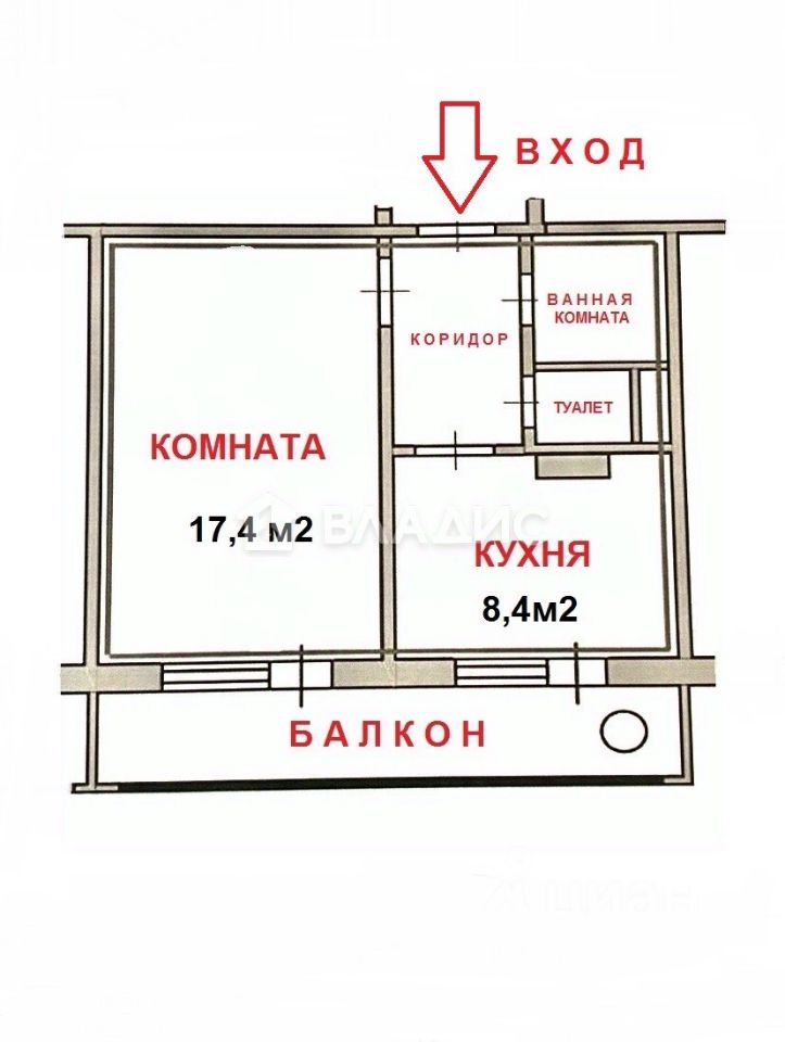 Жилая площадь17,4 м²