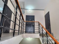 Просторный, уютный подъезд, колясочная, парковка для автомобилей рядом с домом, детская площадка для детей.