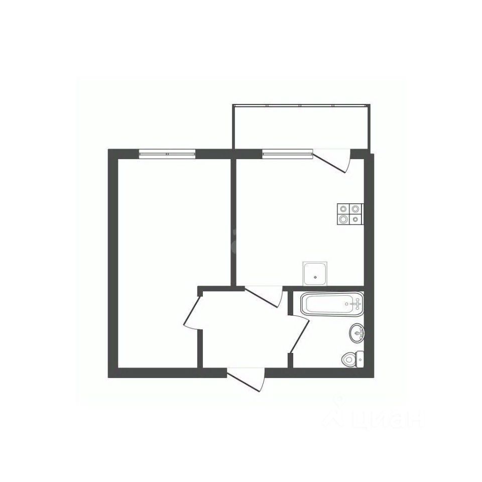Площадь: 36 кв.м., из них кухня — 9 кв.м., балкон остеклен пластиковыми окнами— 3 кв.м.