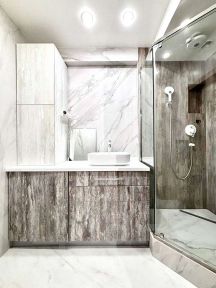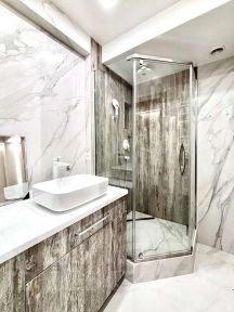 -Санузел облицован большеформатным керамогранитом КЕRАМА МАRАZZI;