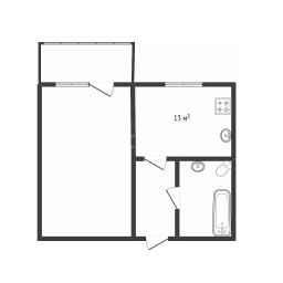 Продается просторная однокомнатная квартира площадью 41.4 м² с кухней 13 м² и жилой зоной 21 м², что обеспечивает комфорт, сравнимый с двухкомнатной планировкой.