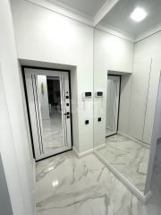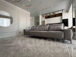 Выполнен дизайнерский дорогой и качественный ремонт, сан. узел и пол в коридоре, гостиной уложены крупноформатным керамогранитом под мрамор и оникс. В квартире высокие трёхметровые потолки, индивидуальное отопление, по всей площади квартиры установлен тёплый пол. Интерьерный свет, все стены окрашены английской краской Little green и немецкой Flugger.