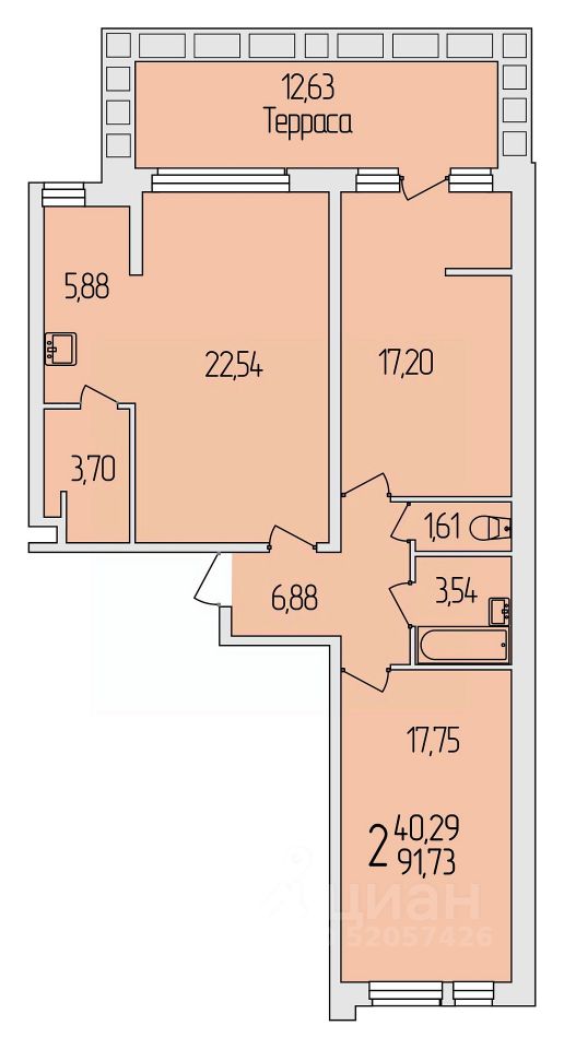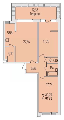 2-комн. квартира, 91,73 м²