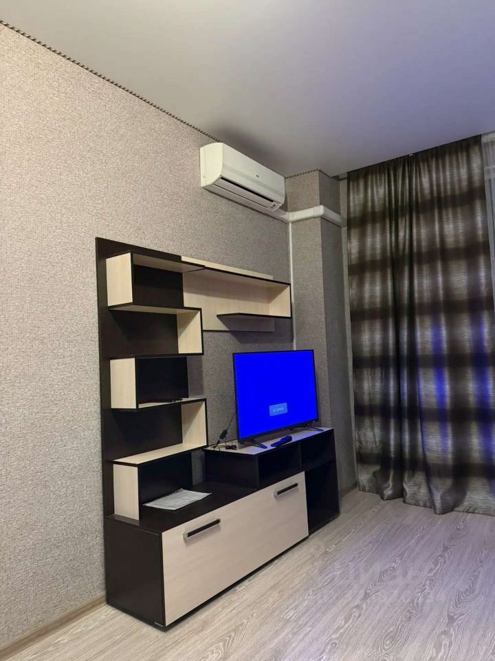 В квартире современный ремонт . Натяжные потолки ,итальянские обои , Установлены окна ПВХ, кондиционер и в жилой комнате. Большой вместительный шкаф купе в потолок в жилой комнате