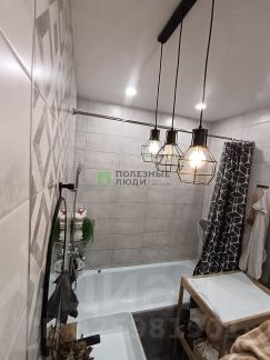 Санузел совмещен, облицован плиткой, так же как кухня и коридор. Сделаны натяжные потолки (в спальне точечные светильники).