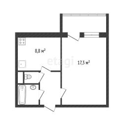* Отличная планировка: Просторная комната (17,1 м²), светлая отдельная кухня (8,8 м²) и совмещенный санузел.