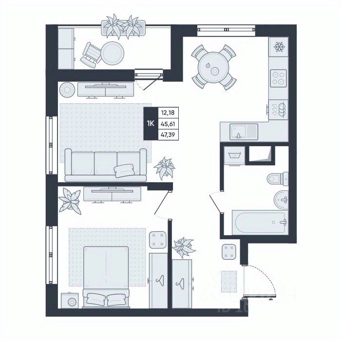 Общая площадь47,39 м²