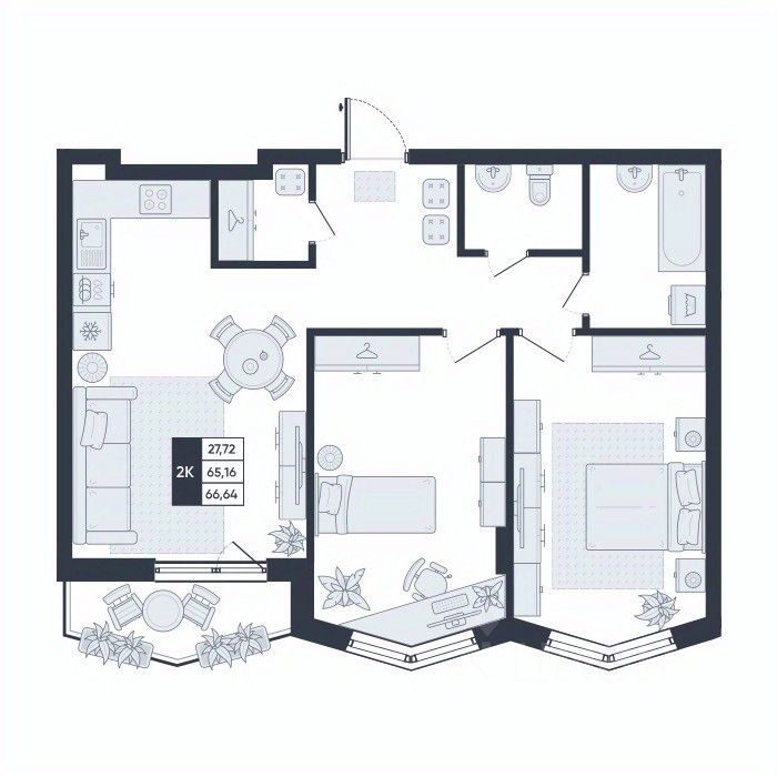 Общая площадь66,64 м²