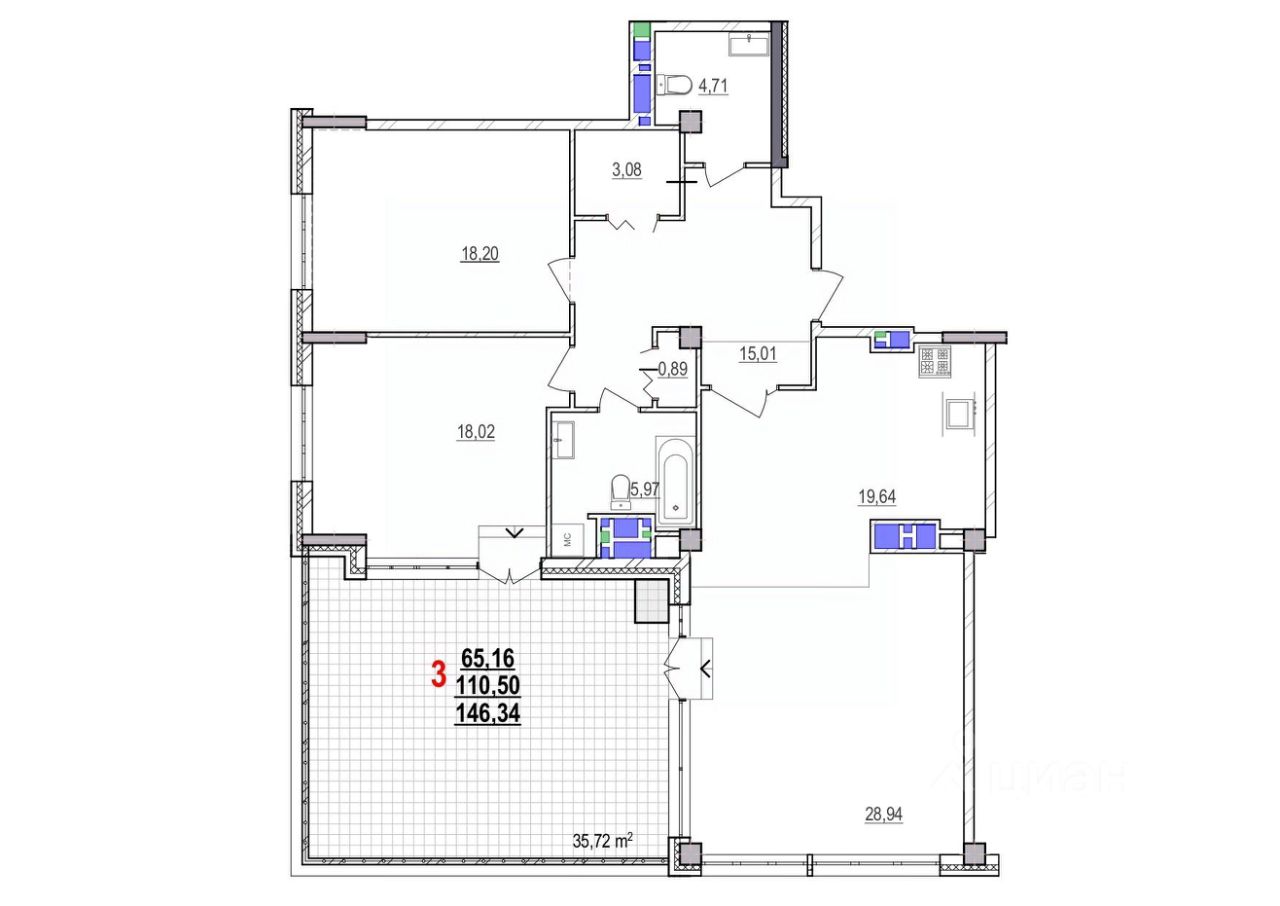 Продаётся 3-комнатная квартира в строящемся доме (Дом 78), срок сдачи: IV-кв. 2026, общей площадью 146.34 кв.м., на 17 этаже. Двухуровневая квартира.