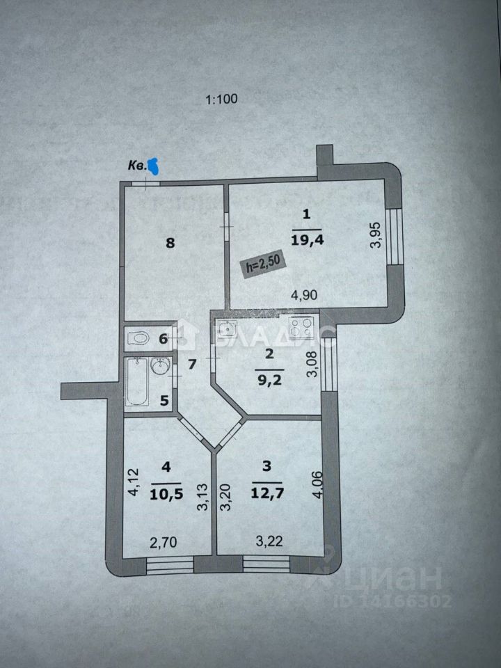 - Высота потолков: 2,7 м