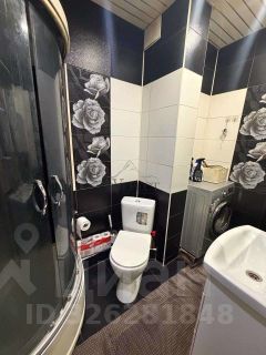 * Ванная комната и сан.узел совмещены, установлена душевая кабина., стены облицованы плиткой.