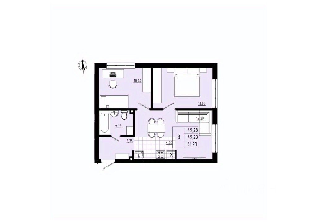 3-комн. от 49,23 м²