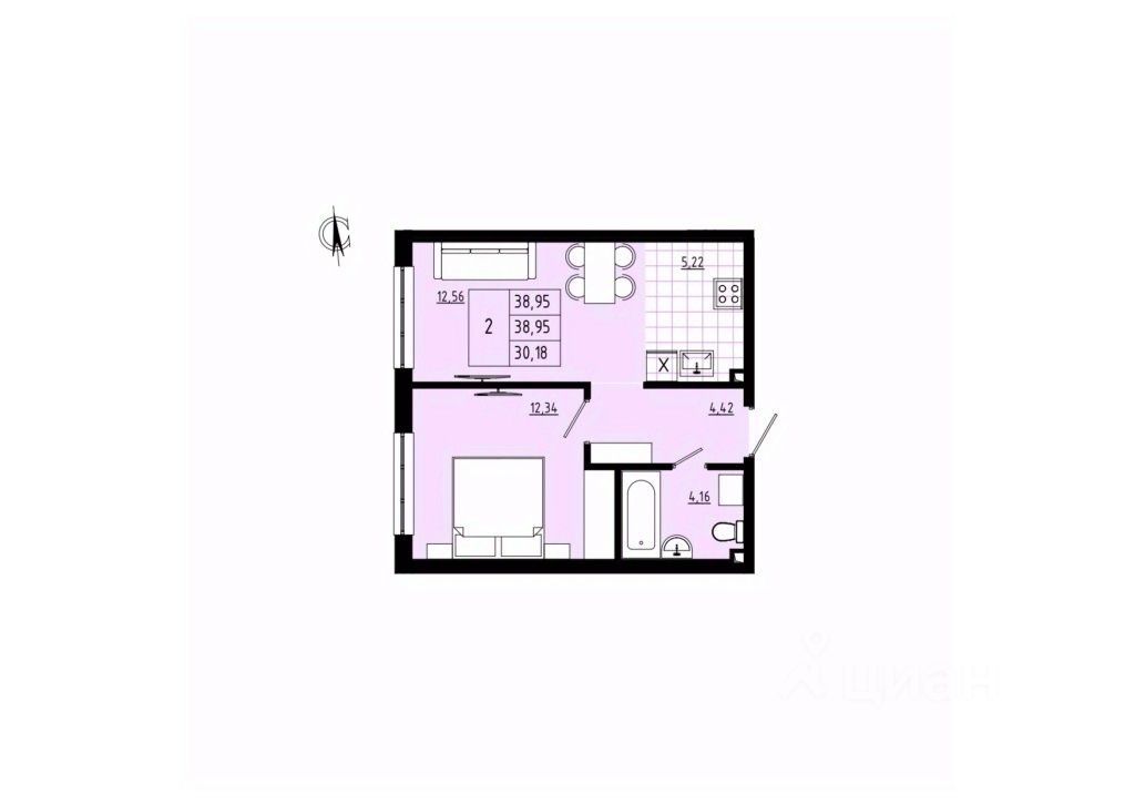 2-комн. квартира, 38,96 м²
