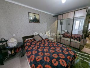 Пол -ламинат, натяжные потолки, окна и балкон ПВХ, балкон с внутренней отделкой, новые межкомнатные двери. Заменены радиаторы, трубы отопления заменены на пластиковые. Между комнатами сделан шкаф-купе с зеркальными дверями, всегда перед выходом на улицу можно посмотреть на себя в зеркало в полный рост. Из спальни-выход на застекленный балкон. А в углу сделана гардеробная. Сан. узел раздельный.