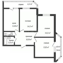1 лоджия, 1 балкон