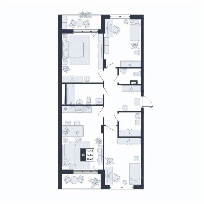 Общая площадь90,42 м²