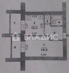 Общая площадь квартиры составляет 38 кв. м, из которых 18 кв. м — жилая площадь. Удобная планировка включает светлую, просторную комнату, функциональную кухню площадью 10,2 кв. м, санузел в керамической плитке.