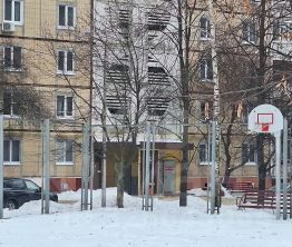 Двор оборудован детской площадкой.