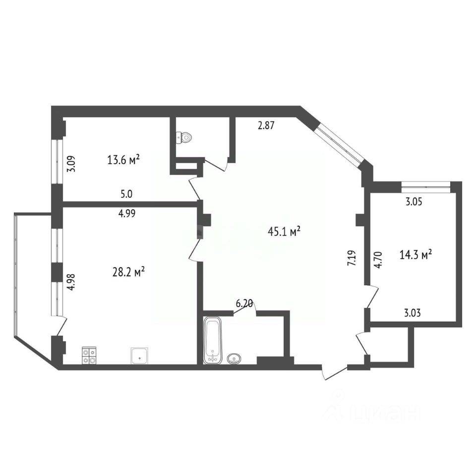 Большая кухня 28м² с выходом на балкон