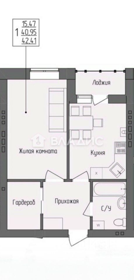 Общая площадь - 40,8 без учета лоджии+лоджия 2.4м2