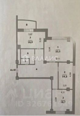- Площадь комнат: 16,7 + 23,5 + 14,3 кв. м.