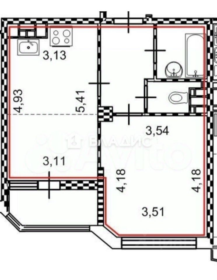 Общая площадь квартиры — 45 кв. м, жилая — 21,6 кв. м, площадь кухни — 9,2 кв. м. Квартира без отделки, что даёт возможность воплотить любые дизайнерские решения.