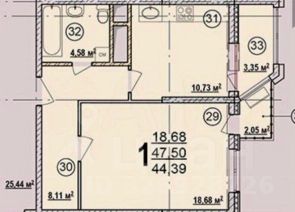 • Общая площадь: 43.00 кв.м.