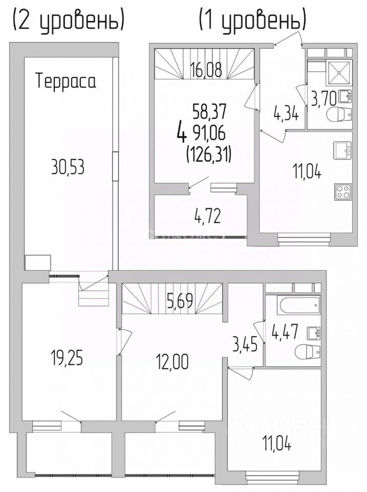 Главная изюминка: просторный выход на собственную открытую террасу площадью 30 м² ваше личное пространство для отдыха на свежем воздухе.