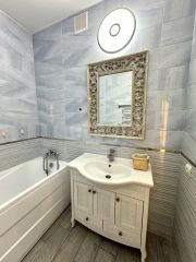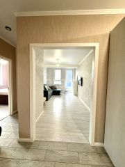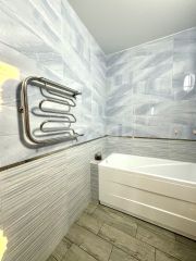 Ремонт качественный , современный и свежий . Стены выровнены , добавлена электрика. На полу керамогранит , в комнатах ламинат 33 класса.
