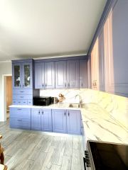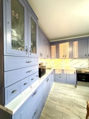 В кухне установлена шикарная встроенная кухонная мебель по индивидуальному проекту .