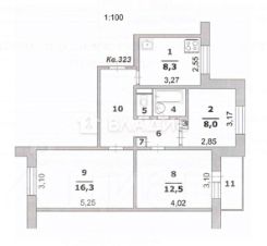 Квартира общей площадью 59,5 кв. м находится на втором этаже девятиэтажного панельного дома 1988 года постройки. Жилая площадь составляет 36,8 кв. м, а кухня — 8,3 кв. м. Комнаты изолированы, что обеспечивает комфорт и уединение. Окна выходят на улицу.