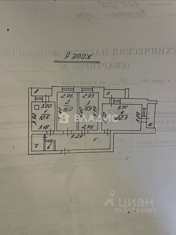 Квартира расположена на 9 этаже десятиэтажного кирпичного дома 2001 года постройки. Общая площадь составляет 99,1 кв. м, из которых 54,2 кв. м — жилая площадь. Три изолированные комнаты с площадями 15,9 кв. м, 16 кв. м и 22,3 кв. м предоставляют отличные возможности для организации пространства по вашему вкусу. Высота потолков 2,75 м добавляет ощущение простора и свободы.
