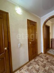 На полу линолеум, стены обои, потолки в комнатах выровнены. В прихожей, коридорах, кухня, и санузлах потолки пластиковые панели.