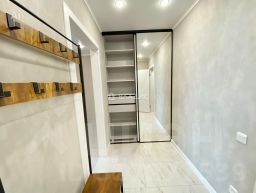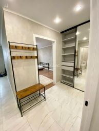 Площадь и планировка: Общая площадь квартиры составляет 45 кв. м, из которых 33 кв. м — жилая площадь, 9 кв. м — кухня. Евроремонт создаёт ощущение простора и уюта, а продуманная планировка позволяет эффективно использовать каждый квадратный метр.