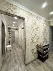 Просторная прихожая , два коридора с нишами в которых отлично расположились встроеные шкафы- купе .